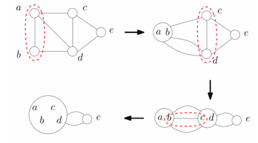 While the number of supernodes >2, pick an edge, and merge the two end points of that edge.