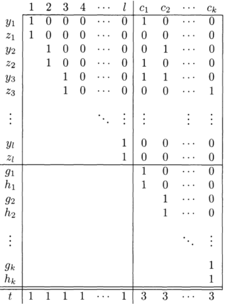 Every boolean variable will correspond to 2 numbers and , while every clause corresponds to 2 numbers and .